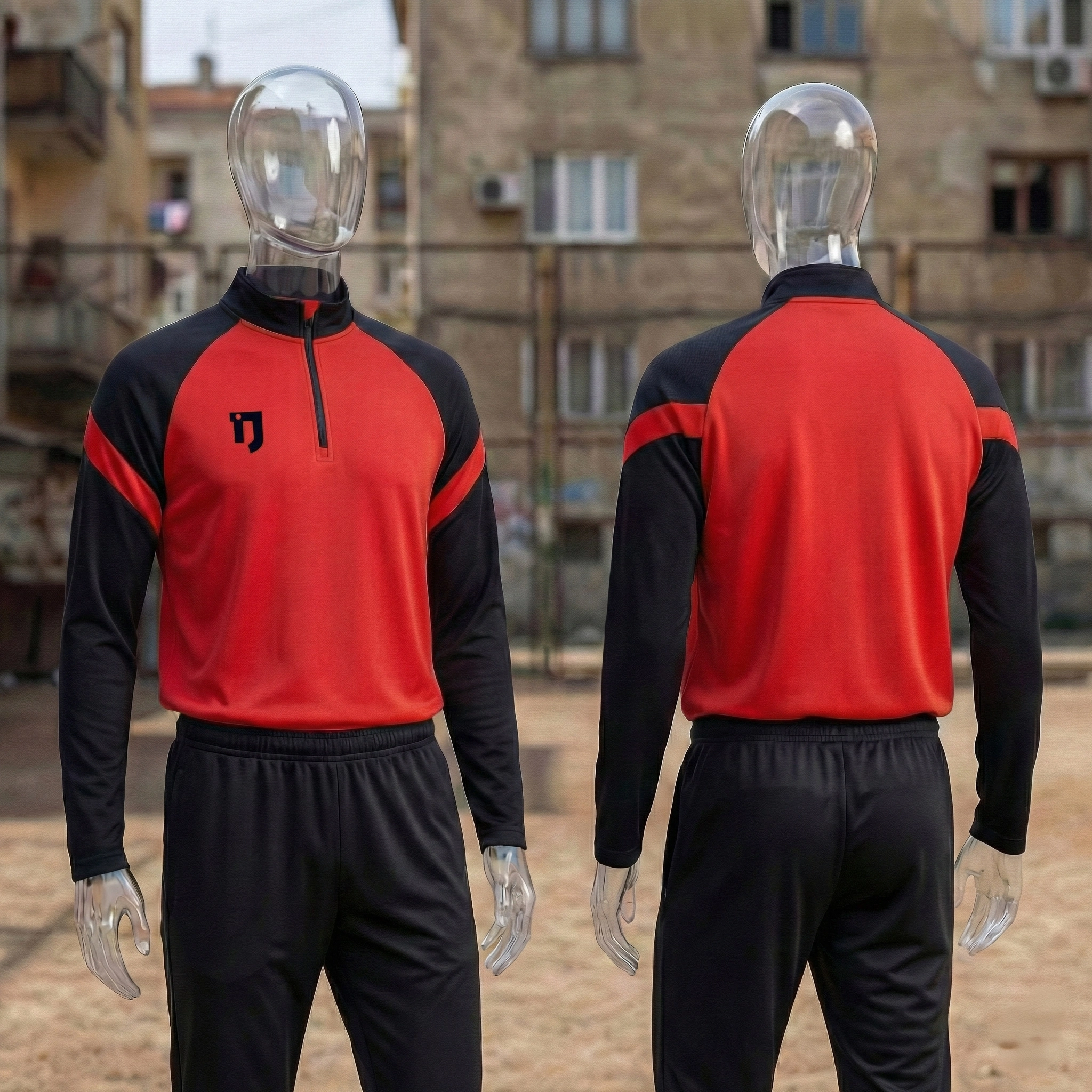 Kırmızı ve siyah renklerin güçlü kontrastıyla tasarlanan bu eşofman takımı, sporcular ve aktif yaşam tarzını benimseyen kullanıcılar için performans, konfor ve şıklığı bir arada sunar. Modern ve sade tasarım dili sayesinde hem antrenmanlarda hem de günlük kullanımda profesyonel bir görünüm sağlar.
